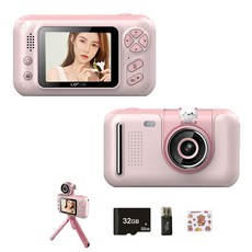 디카 브이로그 디지털 카메라 입문자용 동영상 촬영 꿀딩즈, 핑크, 32GB